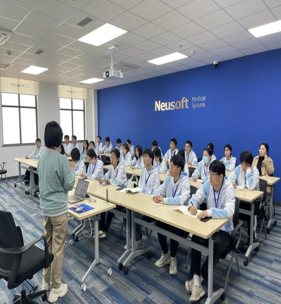 东软汉枫相关部门负责人先后向同学们讲解了医疗科研创新、智慧物联医院建设与应用、智慧医院管理、硬件研发设计等主题知识,组织师生参观了智慧医疗展厅,引发了学生们对于智慧医疗相关技术的浓厚兴趣。