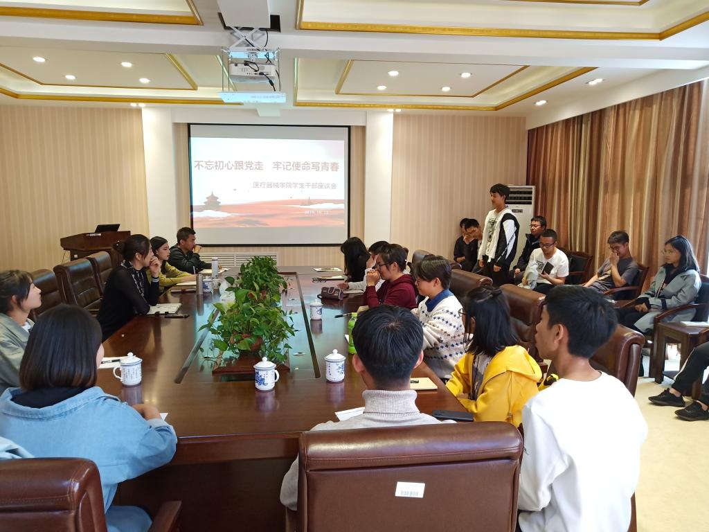 根据taptap点点体育“不忘初心、牢记使命”主题教育安排,10月12日下午3点,taptap点点体育于学院四楼会议室召开了“不忘初心跟党走 牢记使命写青春”学生干部座谈会。学院党委副书记赵宏格、团委书记刘娇娜与全体团委、学生会干部进行了座谈交流。