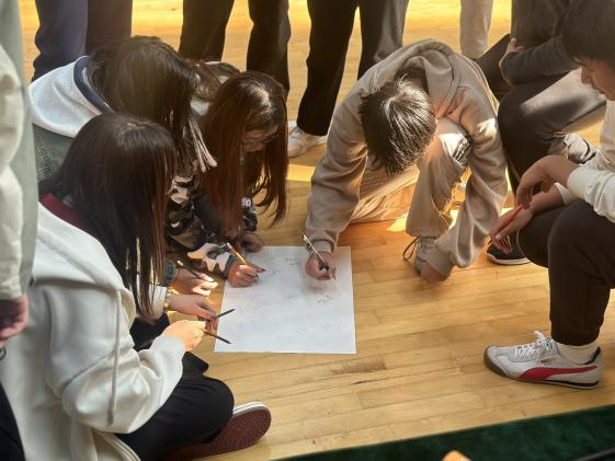活动的高潮部分当属“绘制生命树”环节,每个小组需要在规定时间内在一张白纸上画一棵独属于自己小组的树,其中的树根,树干,树枝,树叶和果实都要与自己相关,最后进行展示和交流。在此过程中,同学们纷纷展示自己的想法,一张小小的白纸上有了每一个同学的影子;在展示环节上,每个小组骄傲地举起自己的作品并喊出自己的口号,现场气氛达到了顶点,这一刻同学们之间的凝聚力达到了鼎峰,赢得了在场老师和其他小组的阵阵掌声与喝彩;通过视觉化的隐喻,让树的各个部分代表生命的不同元素,连接过去、现在和未来;让同学们感受团体中自己与周围重要伙伴的相互影响,展示各个小组旺盛的生命力。