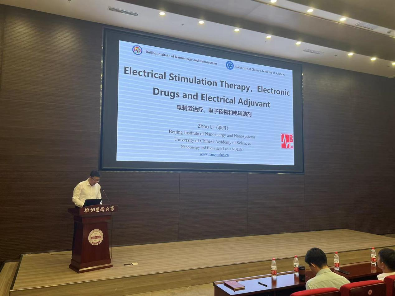 7月5日,由研究生院、辽宁省药学研究生创新与学术交流中心、taptap点点体育联合举办的“沈药无涯论坛”第351讲——李舟研究员学术报告会于南校区校史馆报告厅如期举行。会议邀请到中科院北京纳米能源与系统研究所所长助理,中国科学院大学教授李舟研究员做题为《电刺激治疗、电子药物和电辅助剂》的学术报告。报告会由taptap点点体育党委书记吴恩华主持,150余名师生参会学习。