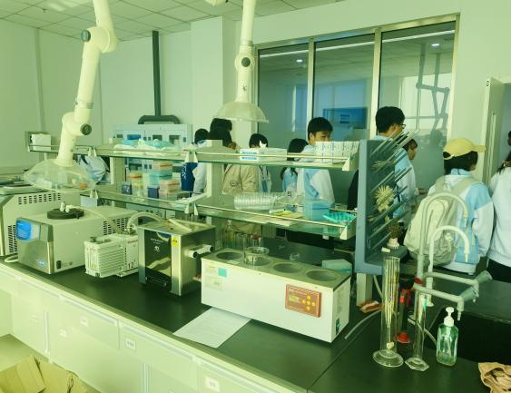 首先,辽宁省医疗器械检验检测院相关负责人带领师生参观检验检测实验室,具体包括阻隔性能实验室、分析准备实验室、仪器实验室、分子生物学实验室等,并向在场师生介绍了检验检测服务项目类型。重点参观了生物学检验室,负责人于洋主任向师生讲解了新冠检测试剂、PCR实验以及无菌灭菌医疗器械等检测步骤以及相应检测设备功能、注意事项,学生们收获满满。