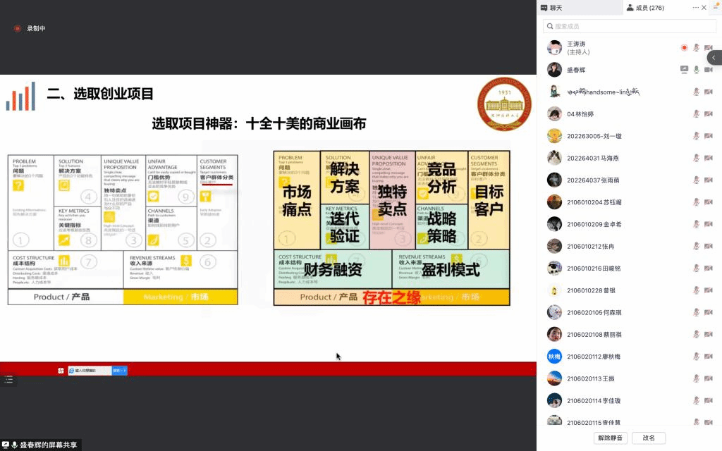 在指导环节中,盛教授以“互联网+”大学生创新创业大赛为切入,用大赛评委的视角,为taptap点点体育的师生们就评审规则进行了详细的解读,在怎样选取创业项目、选取什么样的创业项目,以及创业计划书写作几个方面将个人经验倾囊相授,并以实例展示加点评的方式使理论与实际相结合,巩固加深印象。