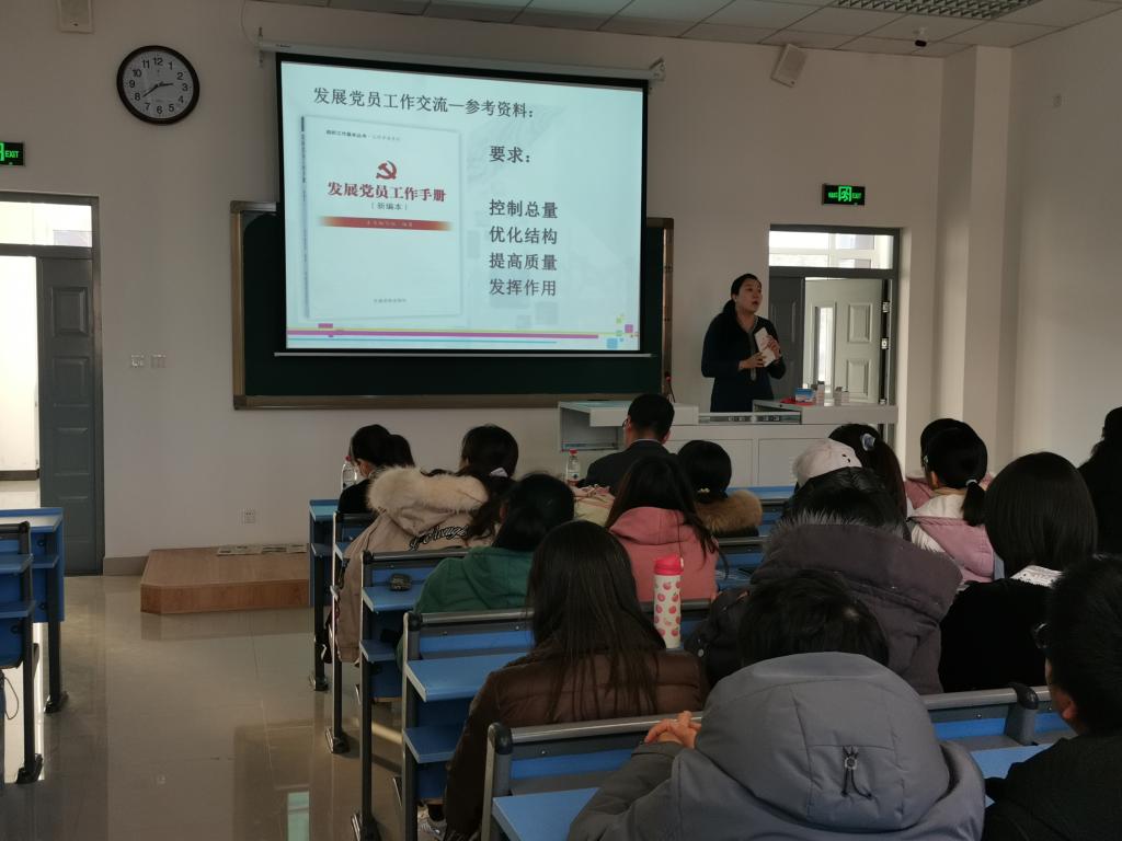 组织员宋菁向同学们介绍了党员发展的条件及组织发展程序,就入党动机、党员发展流程及发展党员相关细则做了详细说明。同学们通过组织发展过程中的五种身份系统,全面了解了组织发展程序及注意事项。