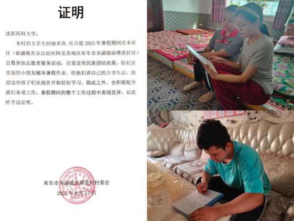 “我在沈药学习,沈药的师生温暖着我,国家的政策鼓励着我,我们想让更多的新疆家长、新疆孩子了解我们的大学生活,了解国家对我们的关照。我会努力学好专业知识,带着知识投身新疆建设发展,把热爱再次献给这片哺育我的热土。”努尔买买提· 热合曼这样说道。