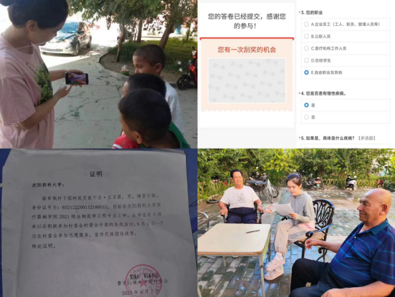“石榴籽”药学大学生实践团在对新疆进行调研考察的同时,发挥专业特长、科普健康用药知识,开展了关于村民用药常识的调查以及安全用药的宣讲活动,邀请当地居民填写问卷,与当地居民进行面对面的交流,宣传并指导当地居民合理用药,共收集调查问卷148份,不仅收获了当地居民的高度评价,也培养了学生的药学服务意识与专业自豪感。