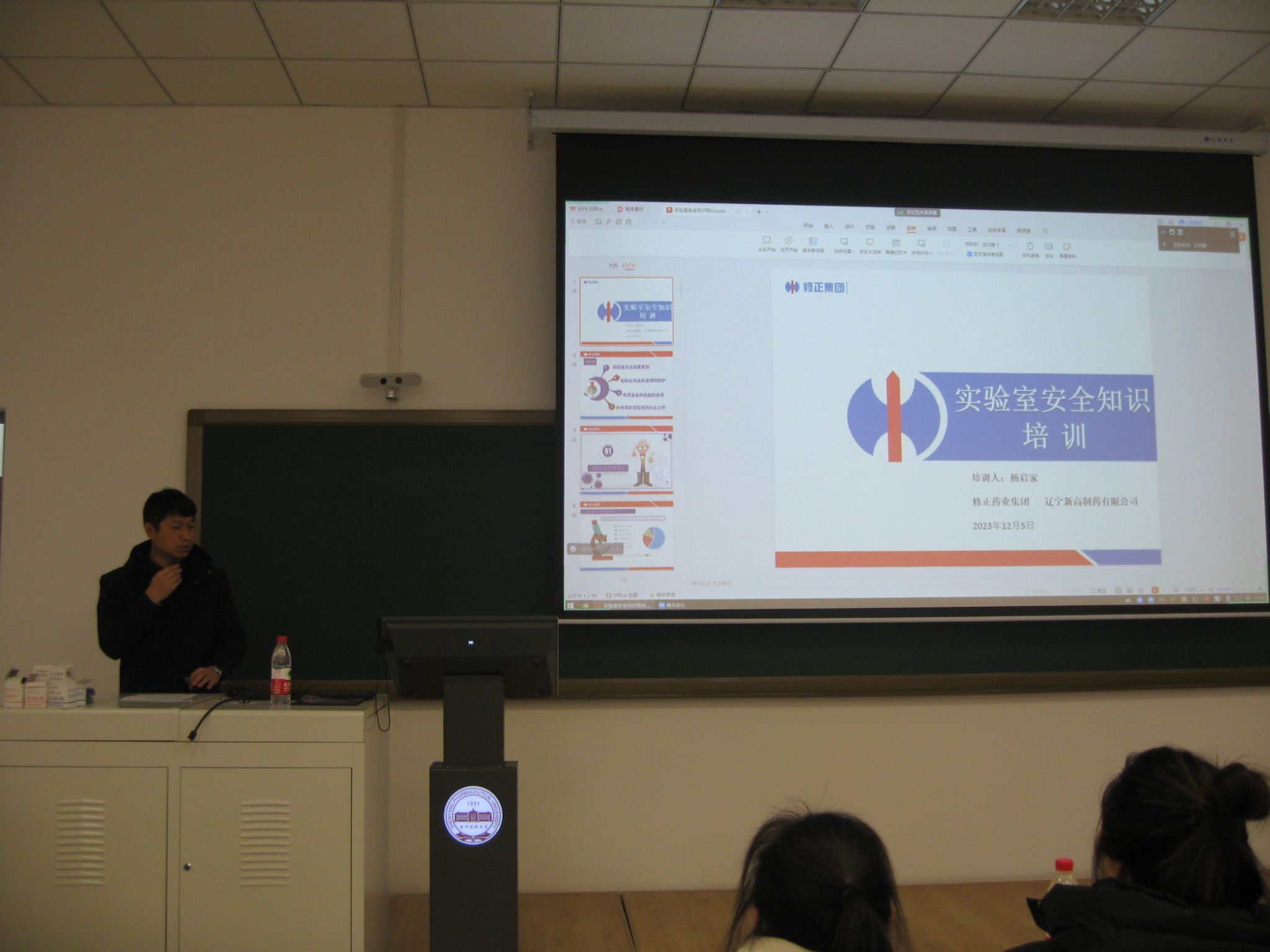 培训会邀请了修正药业集团辽宁新高制药有限公司质量副总杨启家做报告。杨启家首先从高校实验室事故典型案例分析入手,强调了实验室安全意识的重要性。他指出麻痹大意,不学习安全基本知识,不按实验安全规则操作,是实验安全工作中最大的敌人。他进一步从电、水、火的管理与使用、化学药品规范放置、常用试剂的使用注意事项及常见事故的处理方法、废液的科学处理、仪器规范使用、实验安全操作规程等方面展开,深入浅出的讲解了实验室安全细则。他有针对性地指出了防火、防毒、防爆、防灼伤、防盗等安全预防措施。最后他强调只有安全的态度才能决定安全的行为;安全的行为逐渐形成安全的习惯;安全的习惯塑造安全的性格;安全的性格成就美丽的人生。